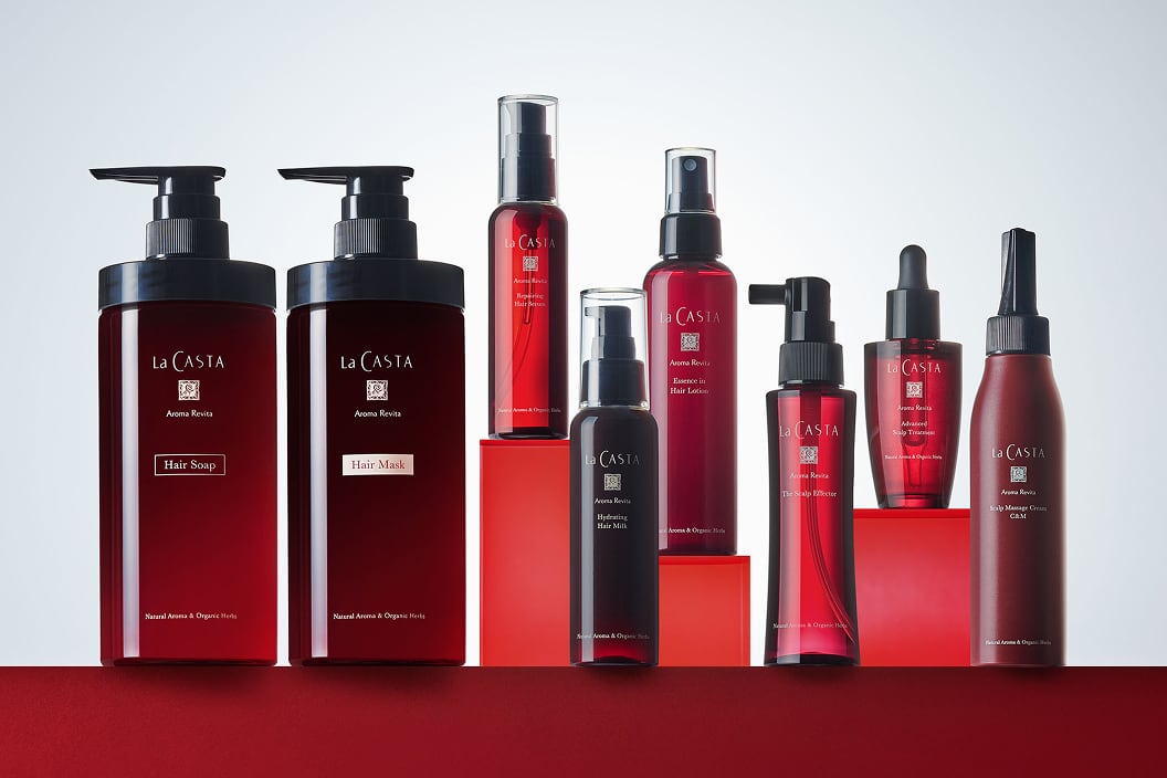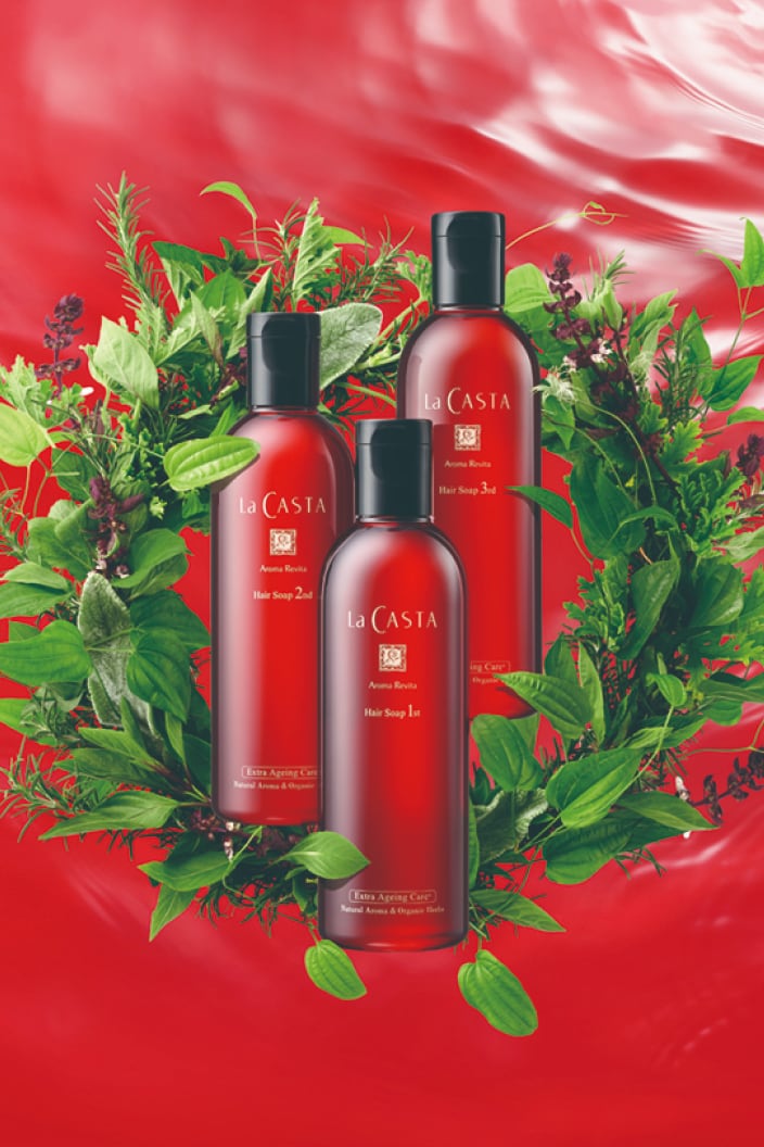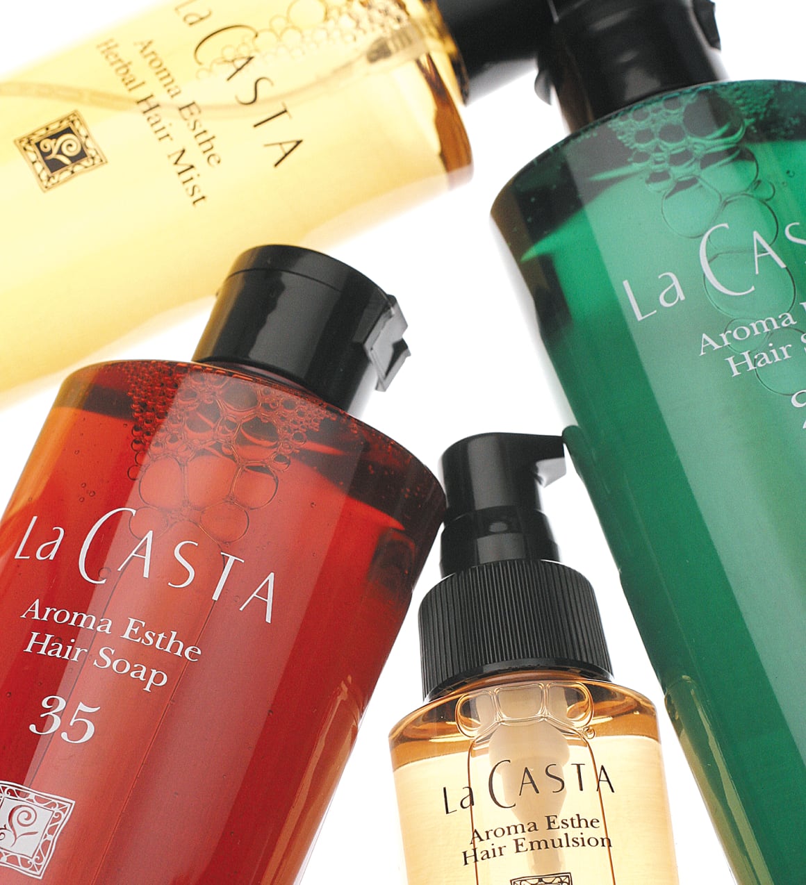 「植物の生命力と癒し」をコンセプトに、アロマテラピーの考え方を取り入れた「ラ・カスタ」が誕生。当時からアロマを化粧品に取り入れたパイオニアとして、30年愛され続けている「アロマエステ」は、心とからだに心地よいコスメとして、スキンケアラインやボディケアラインもラインアップ。ヘアケアラインはヘアソープ2種、ジャータイプのヘアマスク1種、ヘアエマルジョンとヘアミストから始まりました。